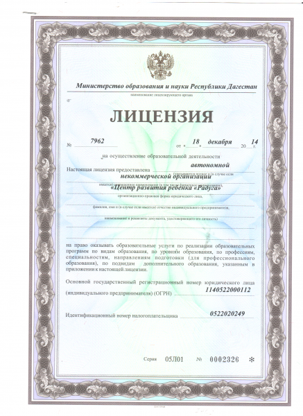 | Полное наименование образовательной организации* | Автономная некоммерческая организация «Центр развития ребенка «Радуга» |
