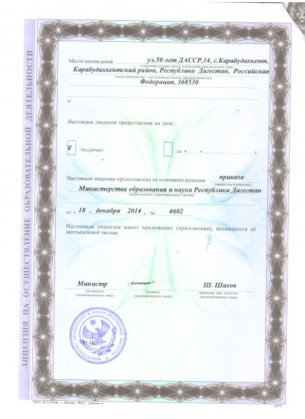 | Адрес местонахождения образовательной организации* | 368530, Республика Дагестан, Карабудахкентский район, сел. Карабудахкент, ул. 50 лет ДАССР №20 |